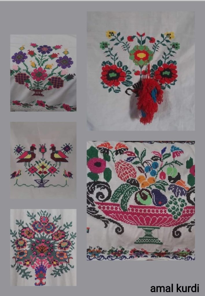 من الفلكور الكردي جداريات المنازل القديمة الجميلة بالوانها المطرزة بابها الألوان حيث كان يتناوب عليها بنات القرية وحكايات الاباء والاجداد وقت الغروب.